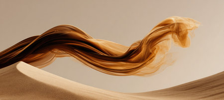 A sand dune shaped from flowing brown and golden smoke, set against a desert-inspired backdrop. The minimalist design is ideal for travel branding and mindfulness visuals.
