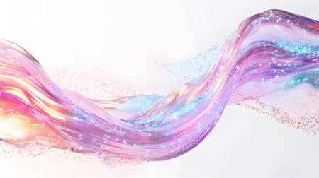 This visually stunning image showcases a cascading wave of iridescent opal glitter paint flowing gracefully down a pristine white background The paint shimmers and glitters creating a mesmerizing