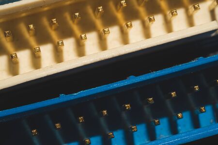 Close-up of different types of electronic connectors. Selective focus.