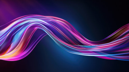 This stunning abstract image features vibrant light waves flowing gracefully across a dark background, creating a mesmerizing and dynamic visual experience.