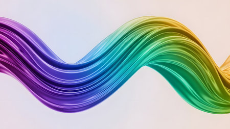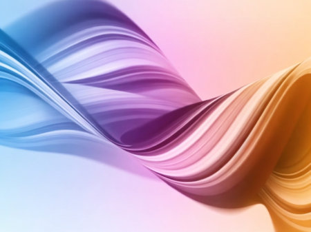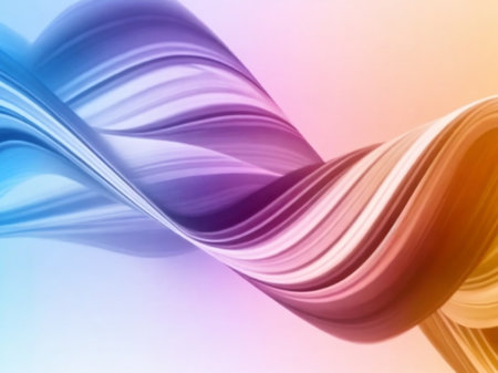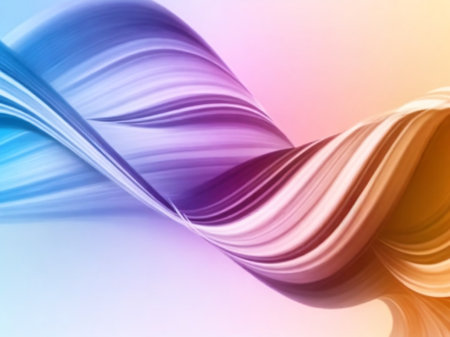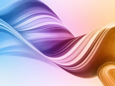 A smooth, swirling ribbon of pastel colors flows across a clean white background. Clear details and vibrant co...