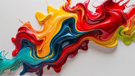Streams of vibrant liquid paint in various colors mixing and flowing together, creating a dynamic and artistic visual effect. AI generated image