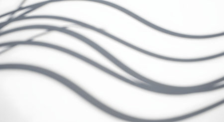 Abstract, soft wavy shadows cast across a smooth white surface. The minimalist play of light and dark creates a rhythmic, organic pattern suitable for backgrounds or design textures.