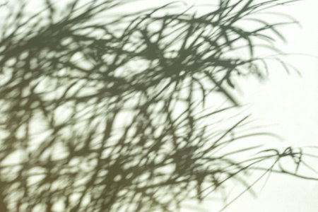 Abstract plant shadow cast on white background in gentle natural sunlight