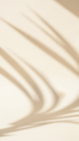 Natural showing soft natural light casting delicate palm leaf shadows across a smooth neutral beige surface creating a serene and minimalist aesthetic keywords:...