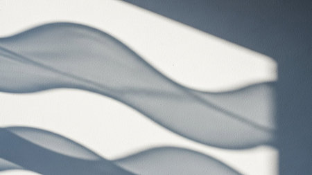 An artistic representation of soft light creating gentle shadows on a smooth wall, featuring elegant wave patterns that enhance the tranquil ambiance of a modern interior space.