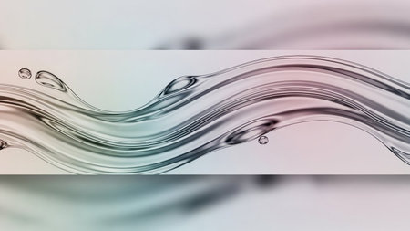 Abstract clear liquid waves with subtle pink and green hues create a smooth, flowing, and glossy design.