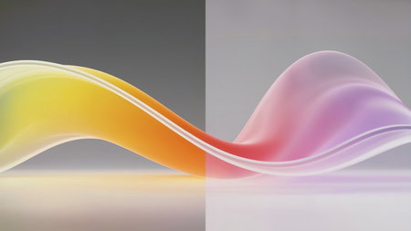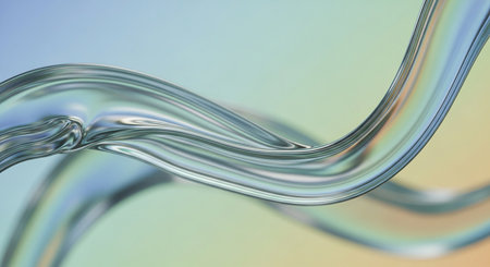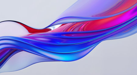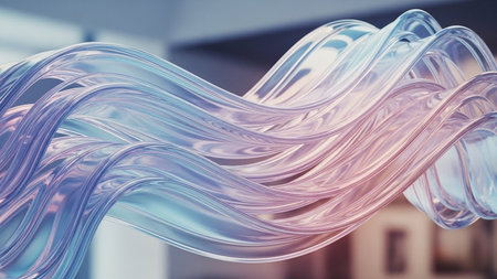 Subtle showing smooth, wavy, translucent glass-like ribbon with subtle color gradient background. resolution use.