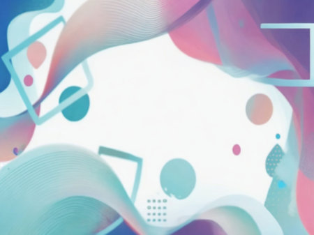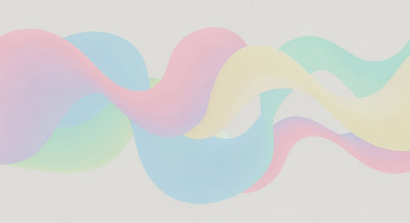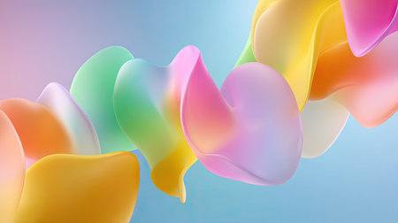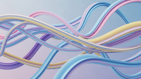 Smooth, flowing ribbons in pastel shades of blue pink yellow and purple weave together against a soft gradient...