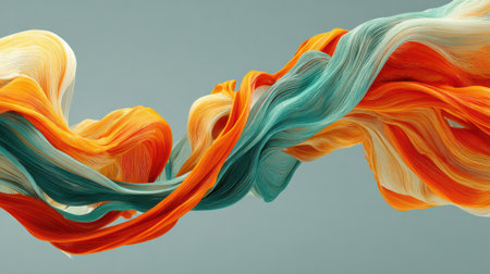 Vibrant strands flow smoothly in an abstract composition, showing the serene movement of colors that evoke a sense of balance and tranquility.