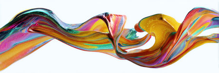 Colorful, twisted shapes against an abstract background, a vector illustration. A vibrant and dynamic composition featuring colorful waves of liquid or fluid forms, creating an artistic and creative visual experience on a white backdrop. The shapes twist in various directions, adding depth to the artwork. An ultra-realistic photograph captured in the style of a high-resolution 3D rendering with cinematic lighting. --chaos 30 --ar 16:9 --v 6.1 Job ID: 6d535b60-00a1-453b-ba54-b56b53319eb6