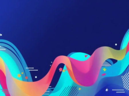 Swirling vibrant ribbons create dynamic movement on a minimalist background