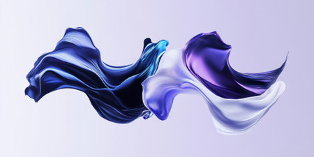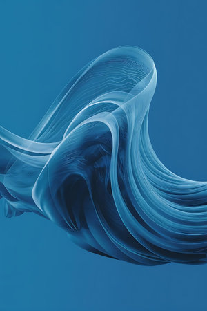 AI Generated. Abstract flowing shapes are rendered in shades of blue