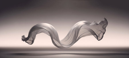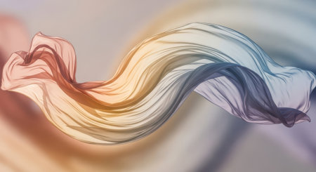 Translucent thin fabric fluttering in the wind. Abstract wavy background. AI generated.