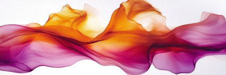 Experience the smooth elegance of flowing fabric in this abstract artwork, blending warm oranges and yellows with cool blues and purples for a captivating visual.