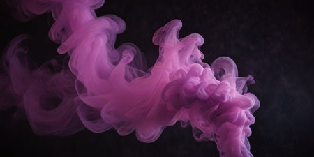 This image features abstract smoke formations gracefully swirling against a dark background. The smoke is rendered in various pastel colors, including pink, purple, and green. The composition highlights the ethereal nature of the smoke. It is suitable for commercial uses, as a background, or a design element in creative projects.