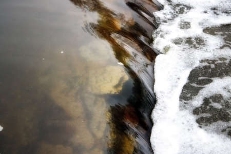 Water surface with foam and bubbles