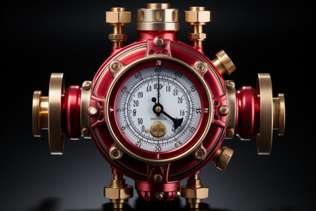 Striking close up of red industrial gauges and pipes in a modern factory showcasing clean design.
