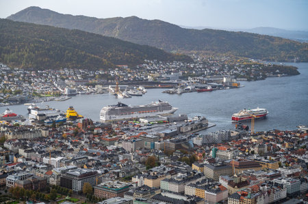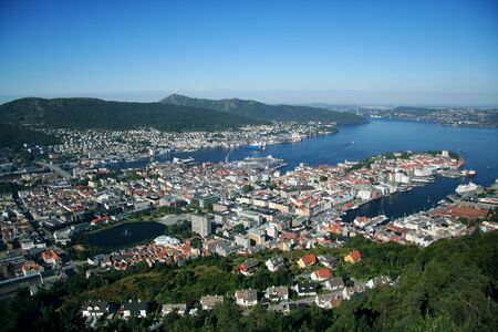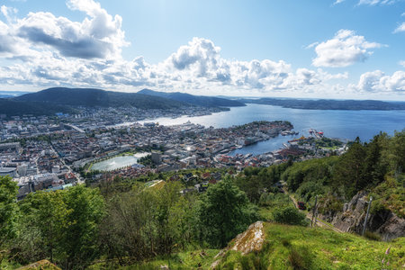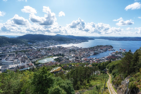 Bergen summer city view from mount floyen. Taken from July 4th 2025 in Bergen, Norway