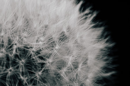 Close up of dandelion clock in monochrome colors.