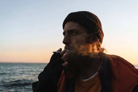 photo of bearded guy smoking cigarette. bad habits