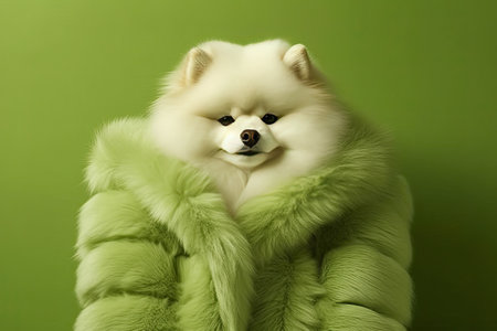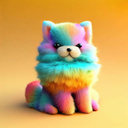 3d rendering of a cute fluffy pomeranian doll isolated on colorful background
