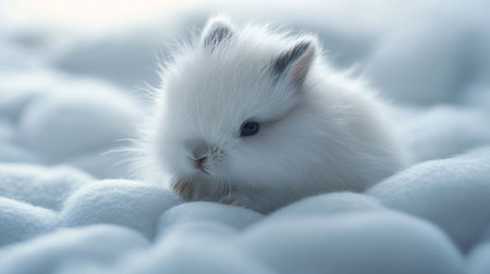 This tranquil image captures a baby lamb curled up in a serene nap, surrounded by plush, cloud-like textures. The soft focus and muted color palette highlight the lamb's gentle features and peaceful expression, emphasizing the tenderness and tranquility of the scene. This photograph is perfectly suited for projects that require visuals depicting serenity, pastoral life, or the nurturing aspects of nature. It offers a peaceful glimpse into the quiet moments of a lamb's life, making it a charming addition to any collection focusing on young farm animals or soothing natural environments.