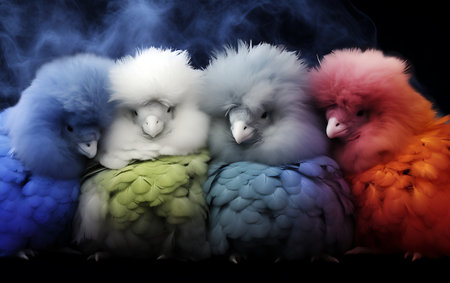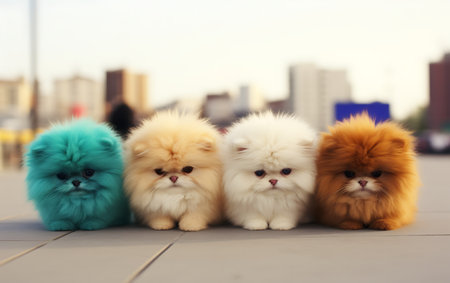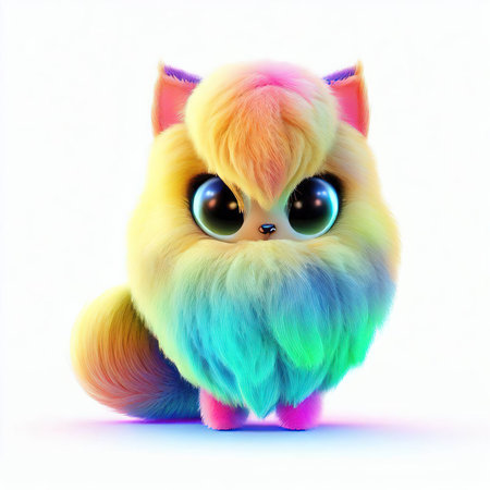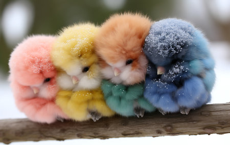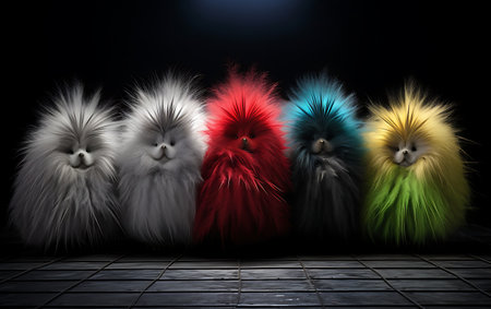 Adorable fluffy plush toys in vibrant colors, close-up view