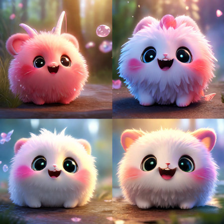 Cute small furries. comic monster. Generate AI