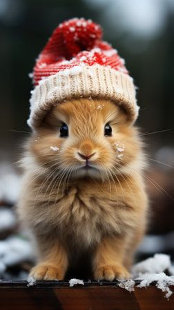 Cute rabbit on a snowy meadow