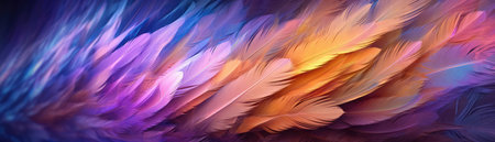 A Rainbow colored feathers arranged artfully create joyful atmosphere. Perfect for Pride celebrations and creative projects