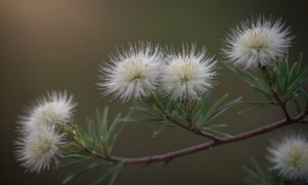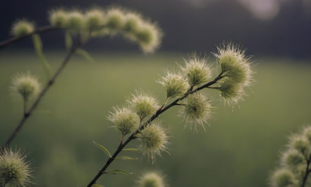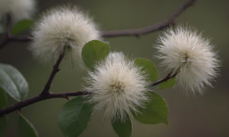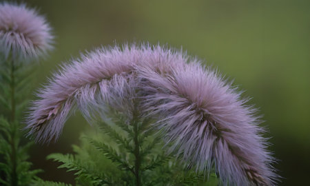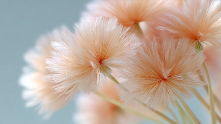 Delicate pink fluffy flowers bloom against a soft blue background in serene botanical beauty