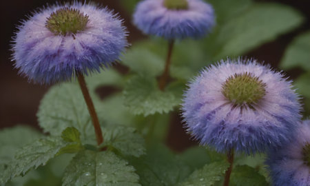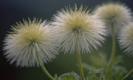 Generative AI The blue light of the dandelion fluff. Abstract closeup of blue dandelion seeds background. Macro shot of detailed blue pappus of dandelion flower seeds in natural environment
