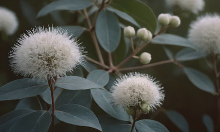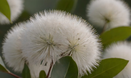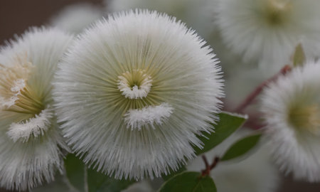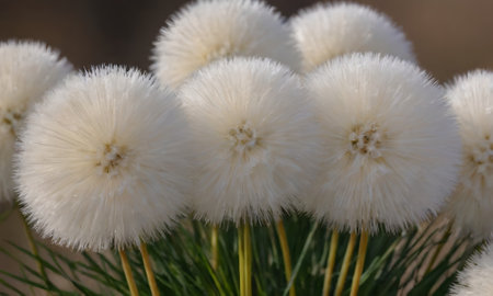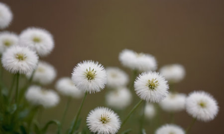 Fluffy white flowers in the field on a summer day. Shallow depth of field