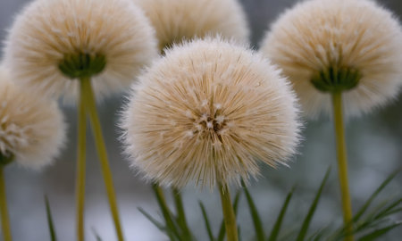This mesmerizing close-up image captures delicate dandelion seeds in a soft focus, showcasing vibrant colors and intricate textures, perfect for nature and art themes.