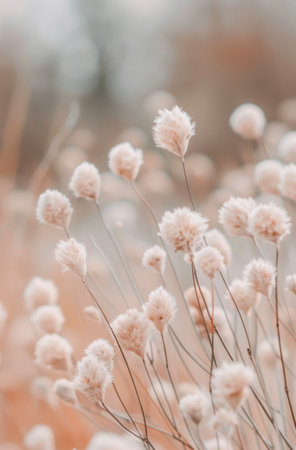 Soft, feathery white flowers sway gently in a field of pink, bathed in warm, golden light.