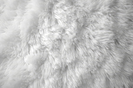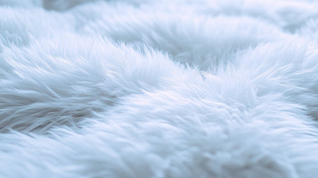 Close-up of luxurious plush white fur close-up, inviting warmth and softness.
