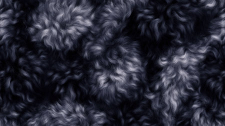 Seamless pattern of black wool texture, fluffy and soft, with realistic sheep fur feel on dark background