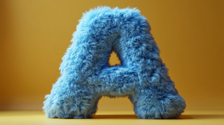 Blue fluffy letter a on yellow background