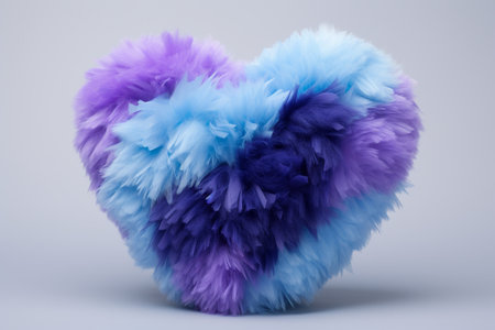 AI. fluffy, puffy and oddly heart made of faux fur purple-blue isolated on a soft grey background