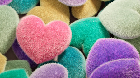 Colorful Soft Heart Shapes With Furry Textures in Diverse Patterns and Colors