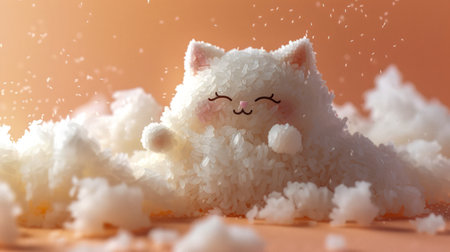 Adorable Fluffy White Cat Resting on a Soft Cloud with Sparkling Dust and a Warm Peach Background Whimsical and Cute Illustration of a Happy Feline in a Dreamy Setting AI Generative