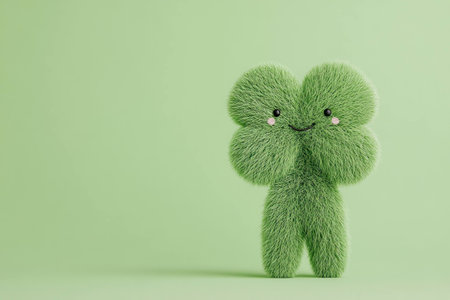 Cute green furry character on a soft green background, symbolizing good luck and joy, perfect for children s themes and festive occasions