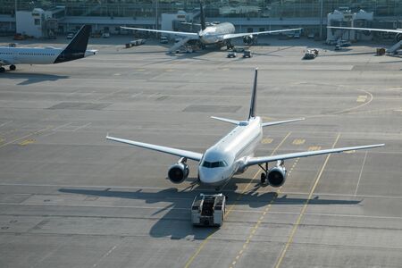 Commercial airplane parking at the airport are stopped effect by covid-19 pandemic around the world economic down crisis,
