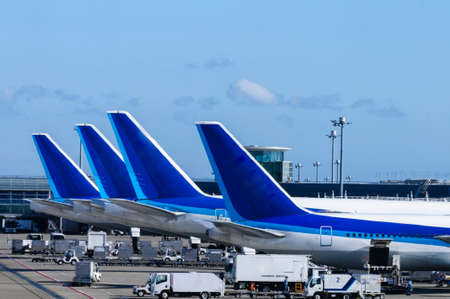 Airplanes stand at the airport. Aerial view. 3D Render