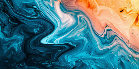 Abstract Swirl Pattern, High-Resolution Fluid Art Background With Orange And Teal Colors
