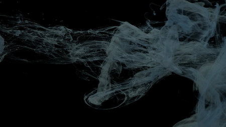 Defocused emulsion. Smoke cloud. Mystical paint art. Dark gray mixed white azure blue particles texture liquid flows acryl waves.