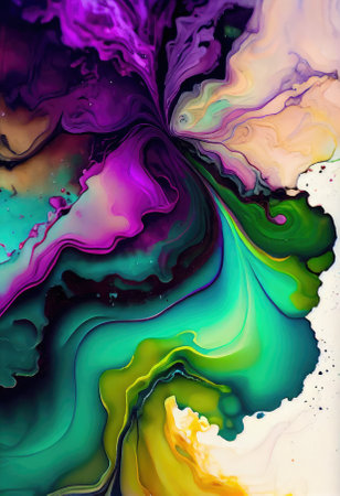 Colorful flow: Bold modern abstract art using a liquid swirl technique, with vibrant colors creating a dynamic and engaging composition