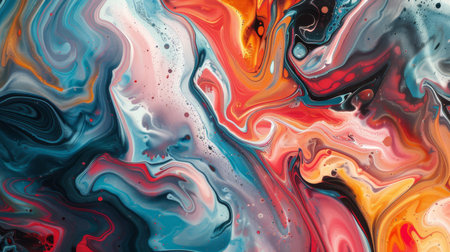 Beautiful Colorful Mixed Abstract Fluid Painting. Acrylic Vibrant Colors Paint Trendy Wallpaper for Technology. Wave Flow Swirl Fluid Marble Art Texture. Home Decoration Contemporary art Background