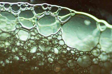 Layer of soapy foam bubbles on water, creating a clean and fresh feel with light emphasizing the soft texture